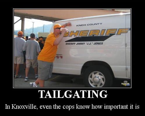 So I was messing around with my image editing software, GIMP, (suck it Abode Photoshop. I am not paying your blood money) and thought it might be fun to create one of those Demotivational Posters for tailgating. So here was my first attempt. Those of you cagey veterans that visit this website quite often may recognize the dude drinking in the photo.